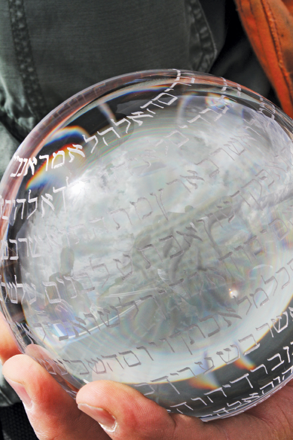 Volunteer Nancy Taylor will never forget what it was like to hold the Torah Ball in her hand. “ (It was) the clearest crystal I’ve ever seen. Everything around it was reflected upside down, in perfect resolution. And the Hebrew inscriptions had a mystical aura.”